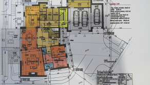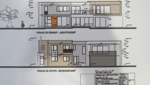 Dispozícia: Na prízemí sa nachádzajú 3 garáže so skladom. Vstupuje sa do domu cez zádverie do haly so schodišťom na prvé poschodie, napravo je chodba, z ktorej je vstup do garáže, kotolne, skladu a na ďalšie schodište na prvé poschodie. Z haly rovno je vstup do veľkorysého priestoru obývačky, ktorá pozostáva z kuchyne s práčovňou a špajzou, jedálne a obývacej izby so vstupom na priestrannú terasu. Z haly vľavo je vstup do pracovne, hosťovskej izby s kúpeľňou a šatníkom a samostatného WC. Na prvom poschodí nad garážou sa nachádza pánska izba s barom a samostatným WC s terasou. Z haly na prvom poschodí je napravo vstup do 3 samostatných izieb s kúpeľňou a šatníkom, na terasu, do rodičovskej spálne s kúpeľňou a šatníkom a do ďalšej izby s kúpeľňou, šatníkom a balkónom.
