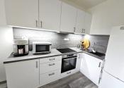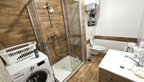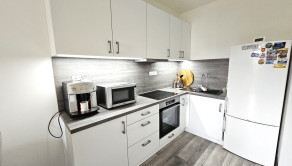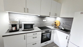 Dispozičné riešenie: vstupná chodba po ľavej strane kúpeľňa s toaletou a sprchopvým kútom. Oproti je obývacia izba s kuchyňou. Z obývacej izby sa vchádza do samostatnej izby – spálne. Balkón má vstup z obývacej izby aj zo spálne. V kuchyni praktická kuchynská linka na mieru so vstavanými spotrebičmi, sklokeramická varná doska, zabudovaná rúra a vstavaný digestor. Internet. Nehnuteľnosť sa nachádza na strategickom mieste v centre mesta so všetkou občianskou vybavenosťou po ruke.