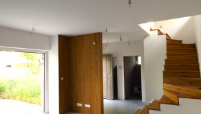 Dispozícia:  Prízemie – zádverie, samostatné WC, kúpeľňa, obývačka s výstupom na terasu (16 m2), schodište na prvé poschodie kde sa nachádzajú dve samostatné izby s francúzskym balkónom, samostatné WC a kúpeľňa s vaňou. Orientácia objektu je na juhovýchod.