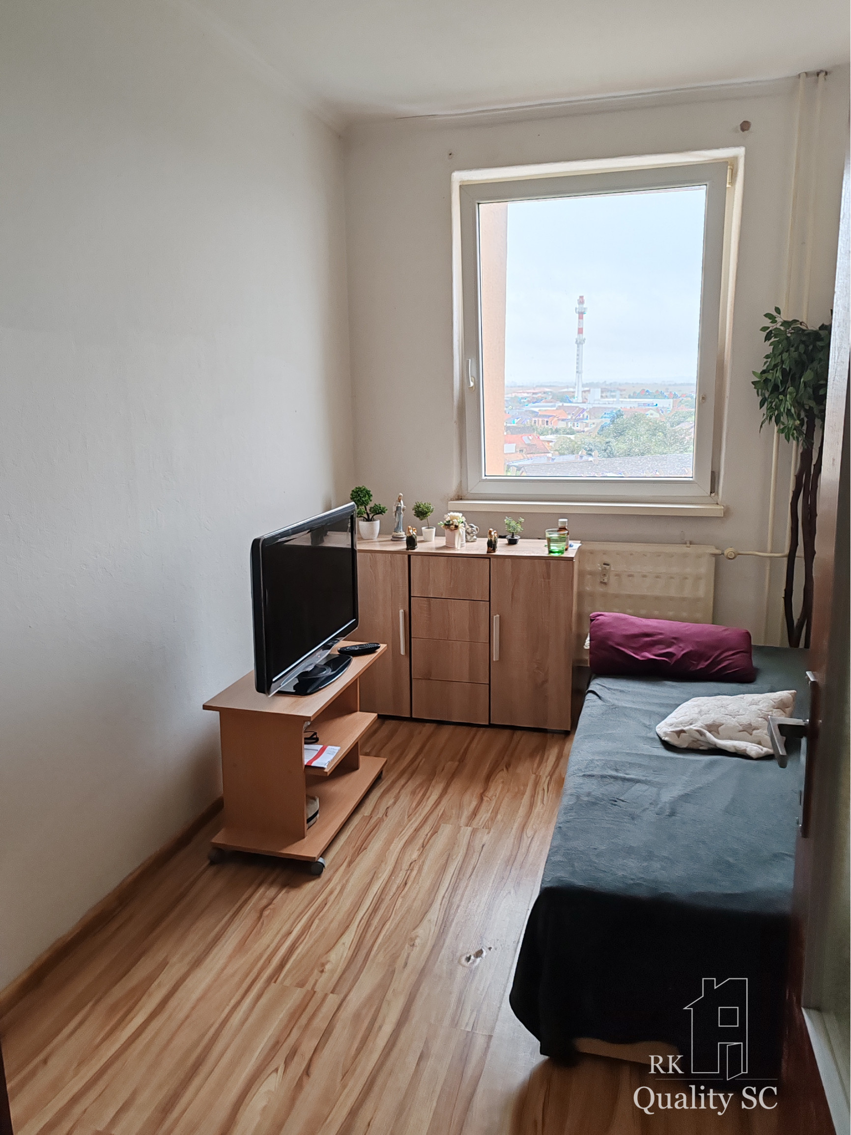RK Quality SC Vám exkluzívne ponúka predaj 3 izb. bytu v centre Senca, v tesnej blízkosti pešej zóny. Byt sa nachádza na 7/8 poschodí s výťahom. Vstup do bytu je cez priestrannú chodbu, vpravo sa nachádza obývacia izba a z nej sa vchádza do spálne, v ktorej sa nachádza loggia o výmere cca 3x1m, po ľavej strane samostatná spálňa a priestranná kuchyňa. Oproti vchodovým dverám je samostatná toaleta a kúpeľňa. Celková výmera podlahovej plochy bytu je 61,52 m2. Okná sú plastové so žalúziami. K bytu patrí pivničná kobka. Bytový dom je zateplený a je obkolesený zeleňou. V blízkosti sa nachádza aj detské ihrisko.