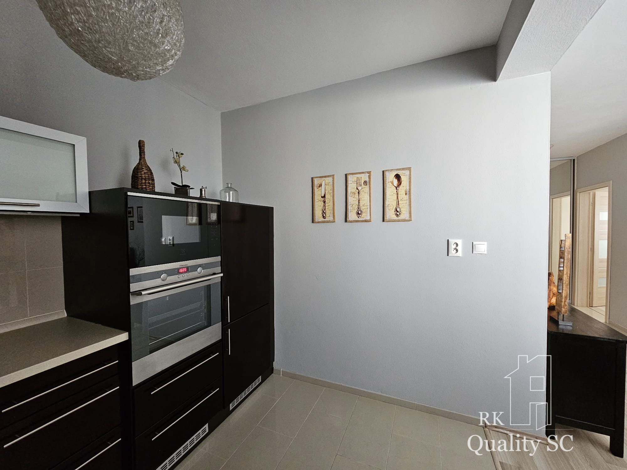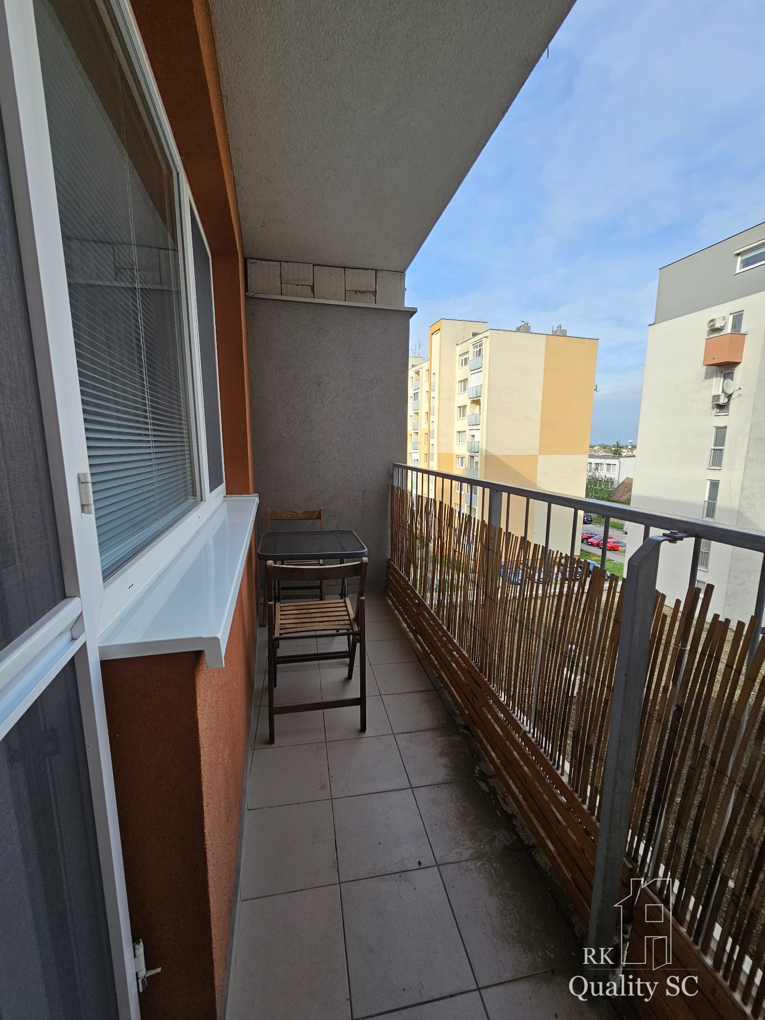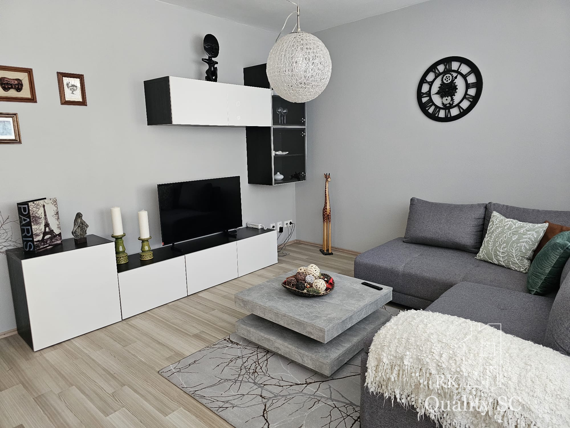 Popis bytu: vstupná chodba so vstavanou zrkadlovou rolldor skriňou, samostatná spálňa s manželskou posteľou + matrace , a vstavaná rolldor skriňa. Na chodbe komoda. Obývacia izba prepojená s kuchyňou. V obývacej časti je sedačka , komoda pod TV, Smart TV stolík, a závesná skrinka 2x. Vstup na loggiu je z obývacej izby . Na loggiu malý stolík + 2 stoličky. V kuchyni je kuchynská linka na mieru , sklo keramická varná doska , digestor, zabudovaná rúra, mikrovlnka , chladnička s mrazničkou. Kúpeľňa s vaňou a toaletou , práčka .