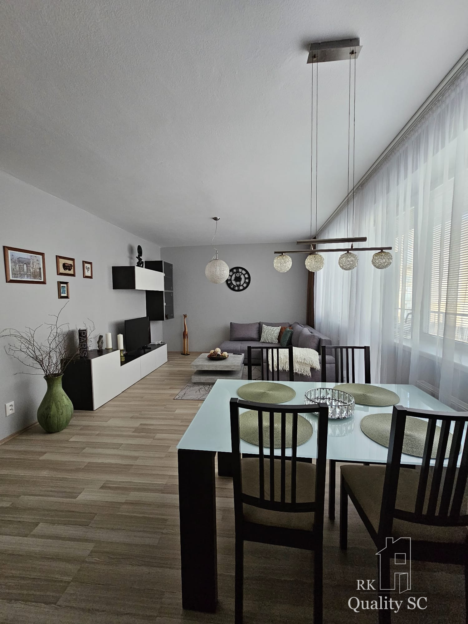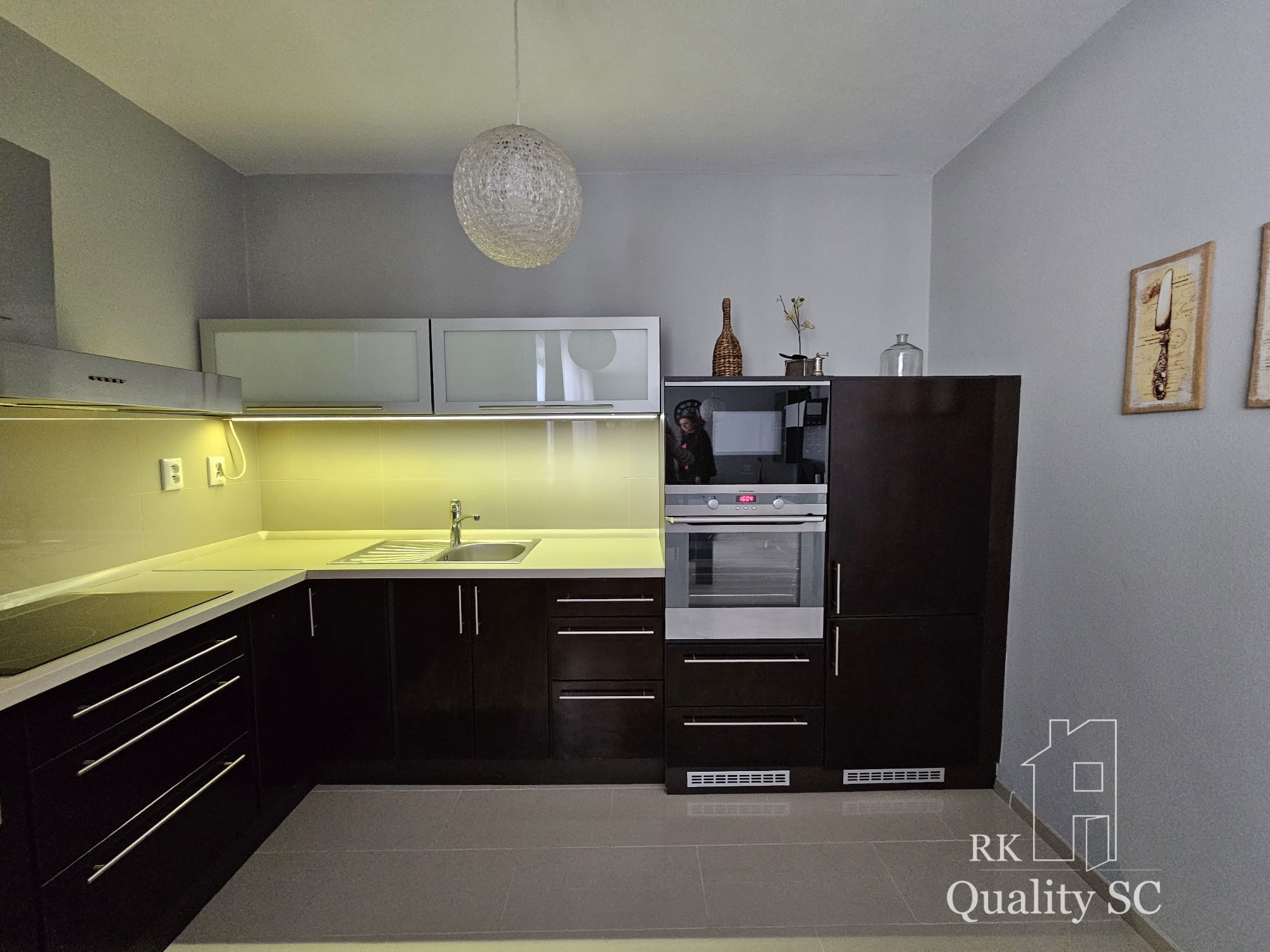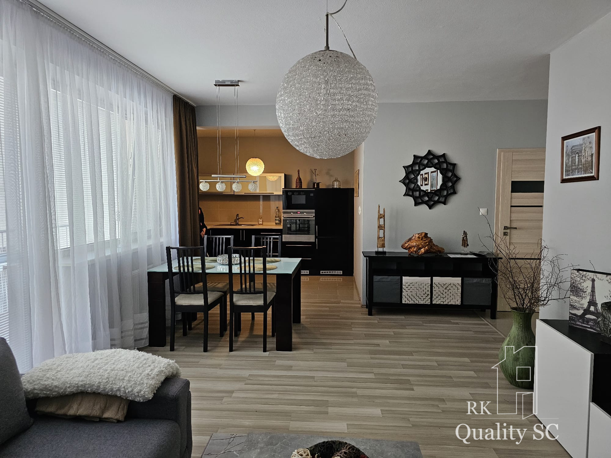 Popis bytu: vstupná chodba so vstavanou zrkadlovou rolldor skriňou, samostatná spálňa s manželskou posteľou + matrace , a vstavaná rolldor skriňa. Na chodbe komoda. Obývacia izba prepojená s kuchyňou. V obývacej časti je sedačka , komoda pod TV, Smart TV stolík, a závesná skrinka 2x. Vstup na loggiu je z obývacej izby . Na loggiu malý stolík + 2 stoličky. V kuchyni je kuchynská linka na mieru , sklo keramická varná doska , digestor, zabudovaná rúra, mikrovlnka , chladnička s mrazničkou. Kúpeľňa s vaňou a toaletou , práčka .