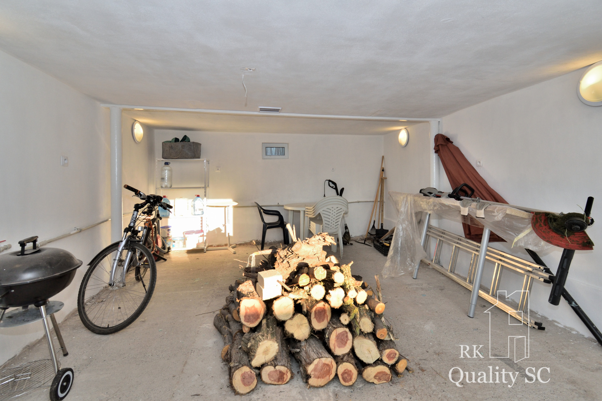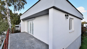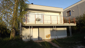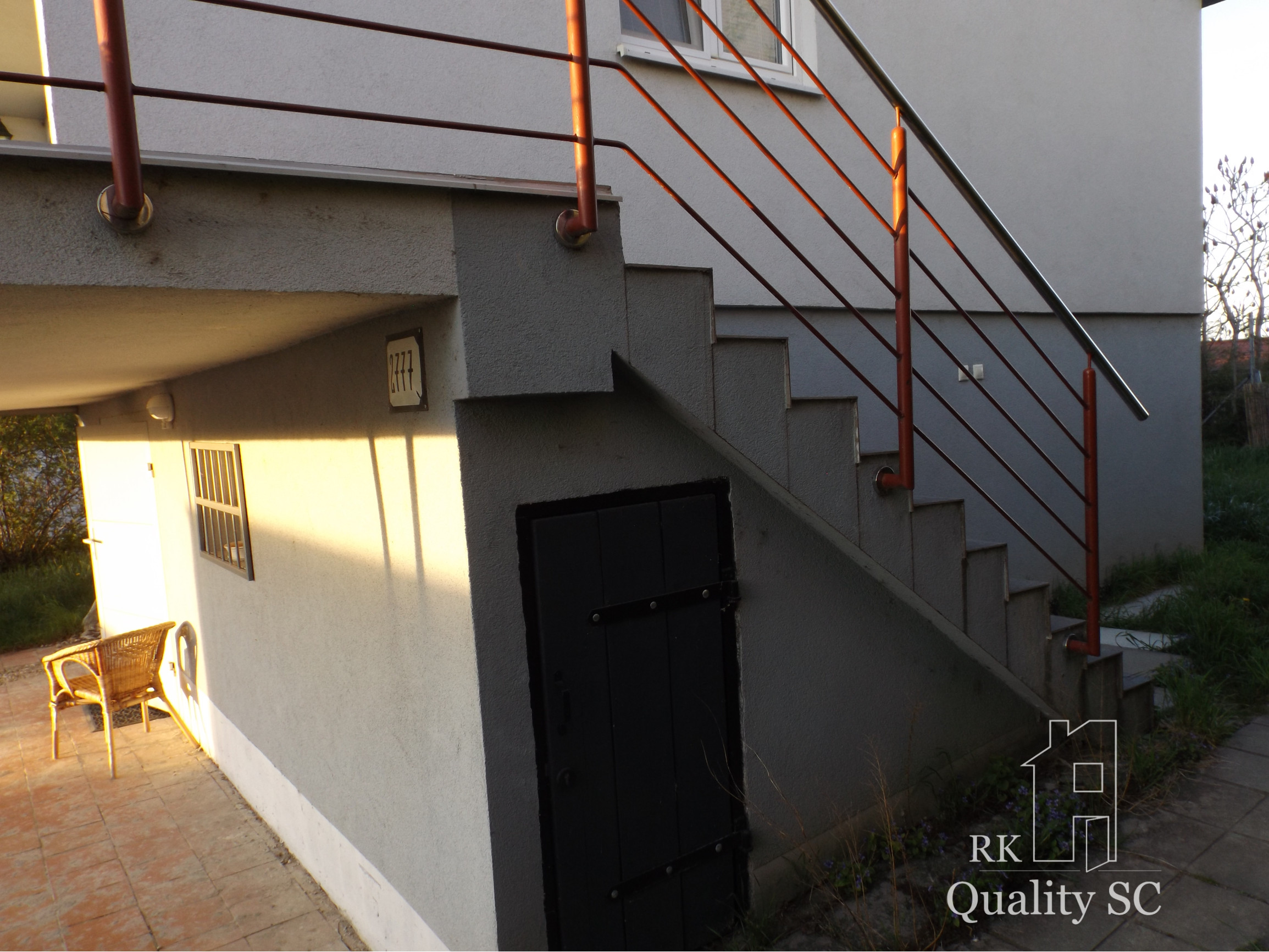 Dispozícia: na prízemí sa nachádza garáž, z nej vstup do technickej miestnosti – skladu. Vonkajšie schodište na prvé poschodie s veľkou terasou cca 15 m2 s orientáciou na juhozápad a vstupom do obývačky s kuchynským kútom, z nej vstup do kúpeľne spoločne s WC a do spálne. Na prízemí sa nachádza ďalšia terasa s výmerou cca 15 m2.