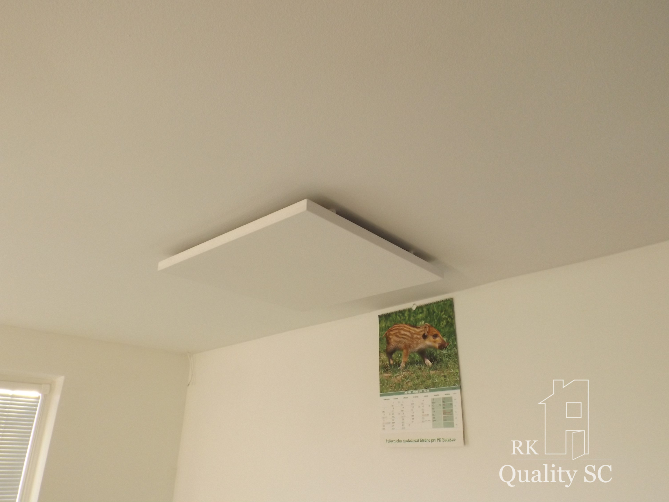Kúrenie je riešené elektrickými infra panelmi a centrálnym krbom. Podlahy sú vybavené keramickými dlažbami.