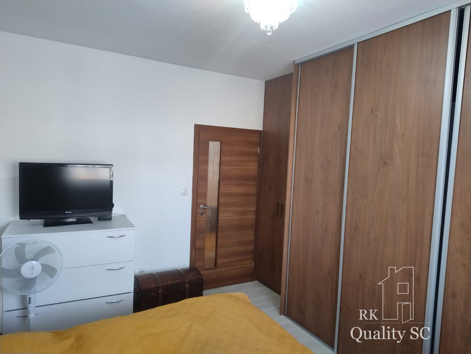 Byt je vybavený: kuchynská linka v tvare L na mieru - vybavená elektrospotrebičmi (chladnička s mrazničkou, el. varná doska, digestor, el. rúra, umývačka riadu, mikrovlnná rúra), ostatné vybavenie zabudované: nová roll-door skriňa v spálni, roll-door skriňa v predsieni, zasklená loggia, nové žalúzie a sieťky, nové závesné zabudované WC, v kúpeľni jedno umývadlo a sprchovací kút. Kúrenie a teplá voda je ústredné s radiátormi. Optický kábel, internet, káblová TV. Tento rok prebehla čiastočná rekonštrukcia: nové WC, vstavaná skriňa, žalúzie. Hnuteľný nábytok je vecou dohody.