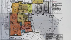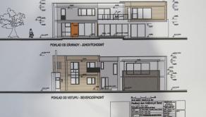 Dispozícia: Na prízemí sa nachádzajú 3 garáže so skladom. Vstupuje sa do domu cez zádverie do haly so schodišťom na prvé poschodie, napravo je chodba, z ktorej je vstup do garáže, kotolne, skladu a na ďalšie schodište na prvé poschodie. Z haly rovno je vstup do veľkorysého priestoru obývačky, ktorá pozostáva z kuchyne s práčovňou a špajzou, jedálne a obývacej izby so vstupom na priestrannú terasu. Z haly vľavo je vstup do pracovne, hosťovskej izby s kúpeľňou a šatníkom a samostatného WC. Na prvom poschodí nad garážou sa nachádza pánska izba s barom a samostatným WC s terasou. Z haly na prvom poschodí je napravo vstup do 3 samostatných izieb s kúpeľňou a šatníkom, na terasu, do rodičovskej spálne s kúpeľňou a šatníkom a do ďalšej izby s kúpeľňou, šatníkom a balkónom.