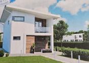 Projekt rodinného domu je mierne pozmenený na katalógový dvojpodlažný rodinný dom (TIGA arch), pričom sa pridala dvojgaráž .