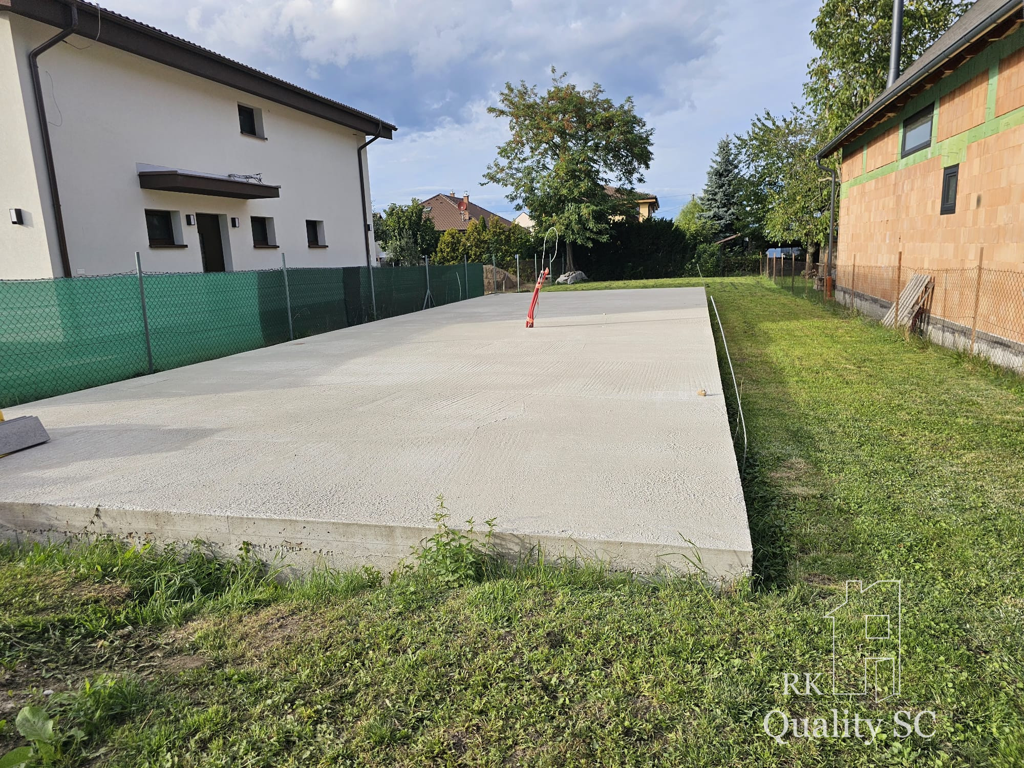 RK Quality SC Vám prináša ponuku na predaj stavebného pozemku so zrealizovanou základovou doskou, platným stavebným povolením, projektom domu a inžinierskymi sieťami - mestská voda, kanalizácia, elektrina, optika.