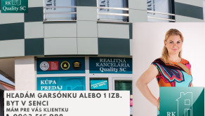 Hľadám pre klientku na kúpu garsónku alebo 1 izbový byt v Senci do 100 000 - 120 000,- EUR