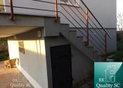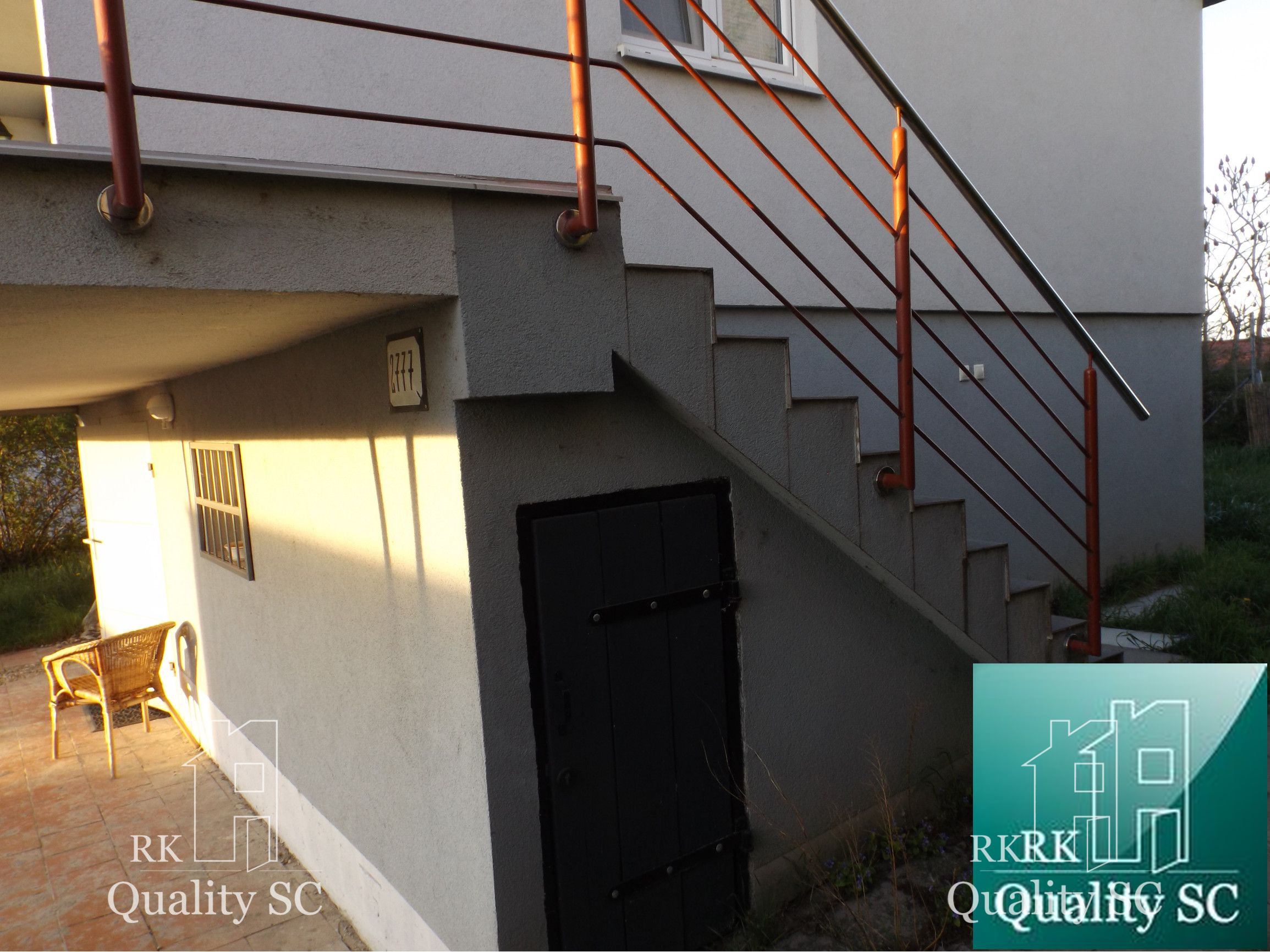 Dispozícia: na prízemí sa nachádza garáž, z nej vstup do technickej miestnosti – skladu. Vonkajšie schodište na prvé poschodie s veľkou terasou cca 15 m2 s orientáciou na juhozápad a vstupom do obývačky s kuchynským kútom, z nej vstup do kúpeľne spoločne s WC a do spálne. Na prízemí sa nachádza ďalšia terasa s výmerou cca 15 m2.