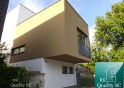 Dvojpodlažný objekt bol postavený z pálenej tehly, zateplený polystyrénom. Objekt bol skolaudovaný v roku 2023. Nachádza sa v stave s vybavením na kľúč: keramické a plávajúce podlahy, kvalitné plastové okná trojsklo, klíma, bezpečnostné vstupné dvere, keramické obklady, vaňa, fotovoltické panely už napojené priamo v objekte, kuchynská linka na mieru s elektrospotrebičmi (el. varná doska, chladnička s mrazničkou, dres, umývačka riadu, digestor, el. rúra, mikrovlnka), príprava na vonkajšie žalúzie, alarm a automatickú závlahu záhrady, el. zásobník na ohrev vody, elektrické a vodovodné rozvody, zdroj vody výlučne vďaka studni. Interiér je nedokončený v nasledovnom rozsahu: sanita v oboch toaletách a oboch kúpeľniach, sprchový kút v jednej z kúpeľní, interiérové dvere so zárubňami a chýba aj zábradlie na schodišti (viď fotografie). Kúrenie je podlahové elektrické odporové. V exteriéri treba dokončiť múrik na parkovisku.