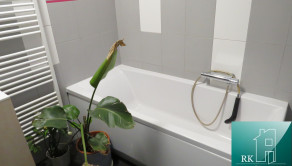 Dispozícia: Vstup do priestrannej obývačky, vpravo kúpeľňa vaňou spoločne s WC, v ľavo šatník, priestranná obývačka s kuchynským kútom a jedálenským kútom s francúzskym balkónom s orientáciou na juhozápad. Čiastočne oddelená spálňa s manželskými posteľami.