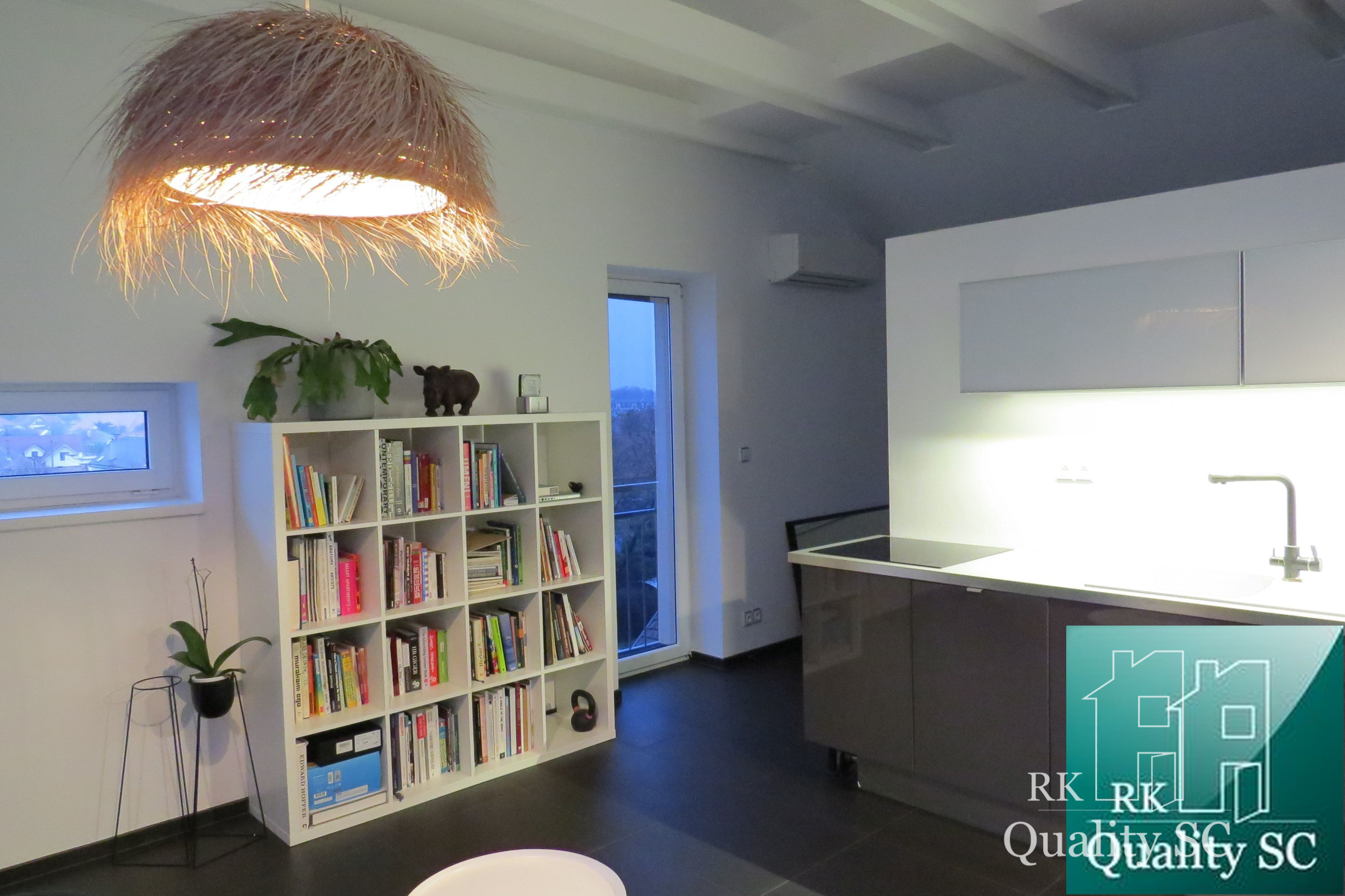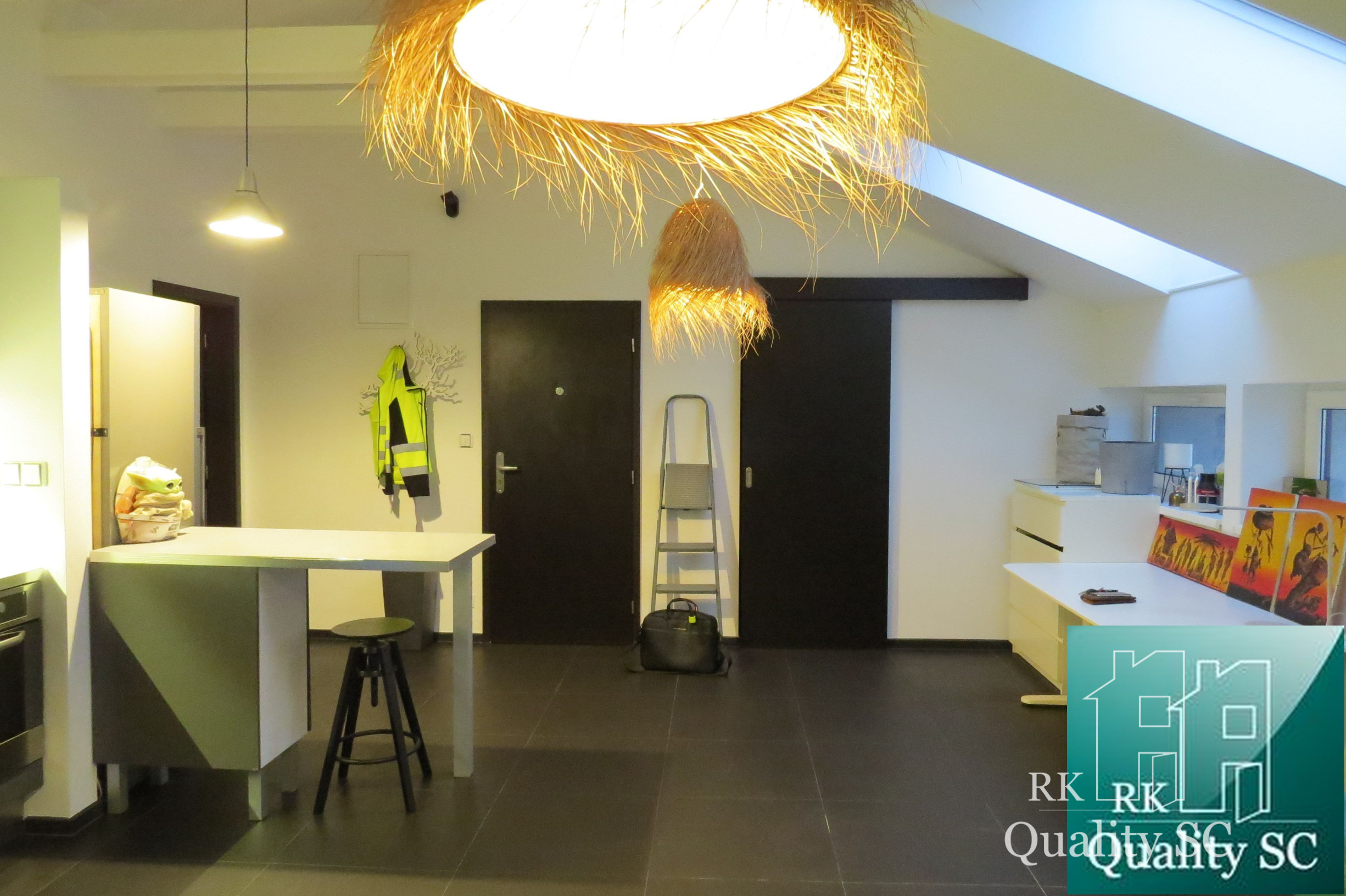 Podlaha: plávajúca, steny: stierky. Okná: plastové a strešné, vnútorné žalúzie. Vybavenie kúpeľne: vaňa, umývadlo, práčka, sušička, spoločne s WC. Vybavenie kuchyne: kuchynská linka, el. varná doska, chladnička s mrazničkou, el. rúra, kuchynský kút.
