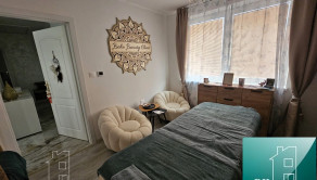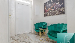 - vstup cez zádverie, po pravej strane kúpeľňa s toaletou a sprchovým kútom. V kúpeľni sa nachádza aj kotol so 120l zásobníkom vody. Po ľavej strane samostatná izba. Oproti vstup do kuchyne, spojenej s obývacou izbou. Zádverie pokračuje chodbou, z ktorej sa vchádza do ďalších dvoch samostatných izieb a kúpeľne s voľne stojacou vaňou a toaletou. Na chodbe sa nachádza veľká vstavaná skriňa. Vstup na povalu, ktorá slúži len ako odkladací priestor. V dome sú použité nadštandardné materiály na obklady, dlažbu a podlahy v izbách. Steny sú upravené modernou talianskou stierkou, čo priestoru dodáva elegantný a luxusný vzhľad. Kúrenie je elektrické podlahové s digitálnou reguláciou teploty v každej miestnosti. IS- elektrina, mestská voda, žumpa, optika. Orientácia na svetové strany Z/V.
