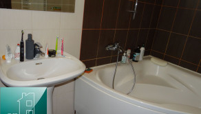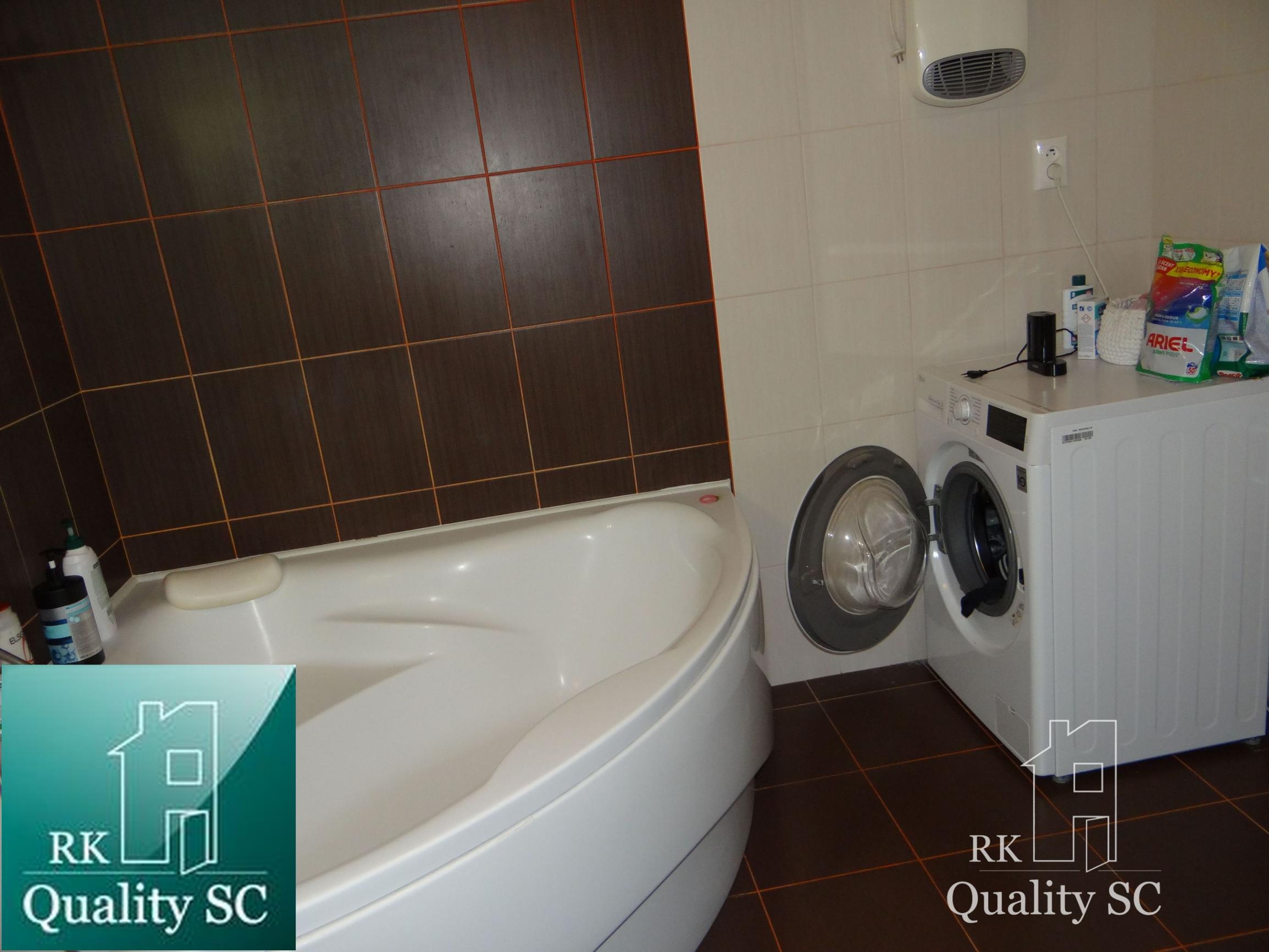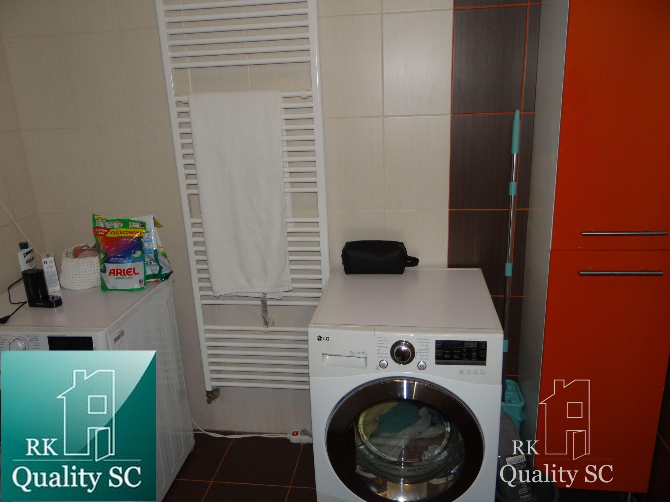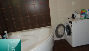 Vybavenie kúpeľne: rohová vaňa, umývadlo, práčka, sušička, samostatné WC s umývadlom.
