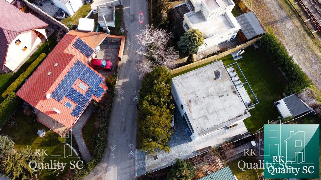 Pozemok je kompletne ohradený betónovým múrom vstu je riešený elektrickou bránou. Celý objekt je zabezpečený alarmom Jablotron s kamerovým systémom.