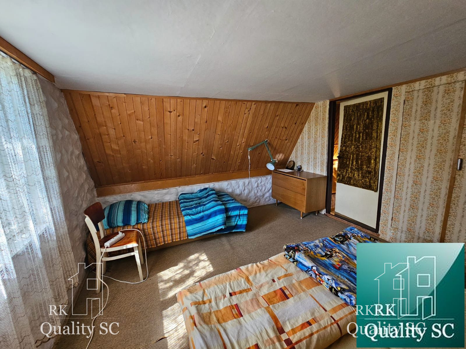 RK Quality SC Vám prináša ponuku na predaj 3 izb. murovanej poschodovej chaty, ÚP cca 80 m2, ZP 52 m2, pozemok o celkovej rozlohe 401 m2. Chata pôsobí veľmi príjemným útulným dojmom, vhodná na rekreáciu aj celoročné využitie. V objekte je zavedená elektina a voda zo studne, ktorá je vhodná aj na pitie. Nechýba ani kúpeľňa so sprchovým kútom a toaletou. V kuchynskom kúte je klasický plynový sporák napojený na plynovú bombu. Teplo a príjemnú atmosféru zaistia krbové kachle, ktoré bez problémov vykúria aj izby na poschodí. Miesto má 5G pokrytie takže v prípade potreby nestratíte kontakt so svetom.