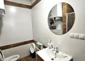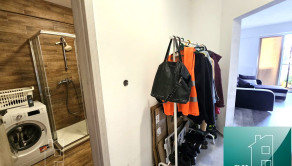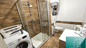 Dispozičné riešenie: vstupná chodba po ľavej strane kúpeľňa s toaletou a sprchopvým kútom. Oproti je obývacia izba s kuchyňou. Z obývacej izby sa vchádza do samostatnej izby – spálne. Balkón má vstup z obývacej izby aj zo spálne. V kuchyni praktická kuchynská linka na mieru so vstavanými spotrebičmi, sklokeramická varná doska, zabudovaná rúra a vstavaný digestor. Internet. Nehnuteľnosť sa nachádza na strategickom mieste v centre mesta so všetkou občianskou vybavenosťou po ruke.