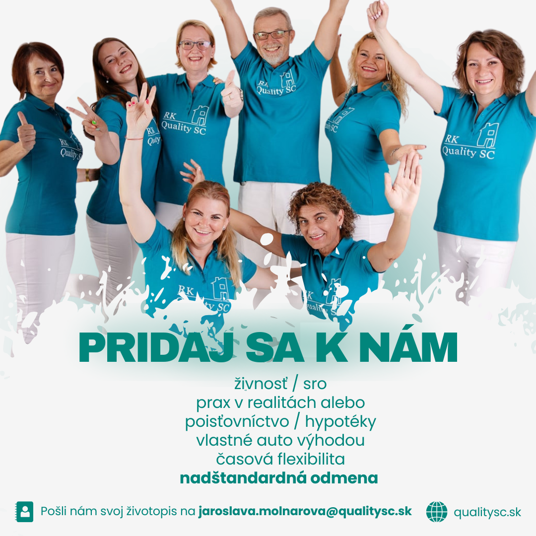 Naše ponuky zverejňujeme aj na webe: www.ZoznamRealit.sk (jeden z najnavštevovanejších realitných portálov na Slovensku),ide o jediný realitný portál na Slovensku v rukách neziskovej organizácie združujúcej realitné kancelárie, viac info: www.zrks.sk . Náš profil nájdete na: https://www.zoznamrealit.sk/realitna-kancelaria/rk-quality-sc-s-r-o