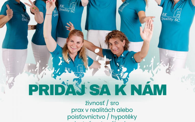 Našu RK Quality SC nájdete otvorenú každý pracovný deň od 9:00 do 17:00 hod. v Obchodnom dome KOCKA na pešej zóne – Lichnerova 25 v Senci (pri ČSOB).