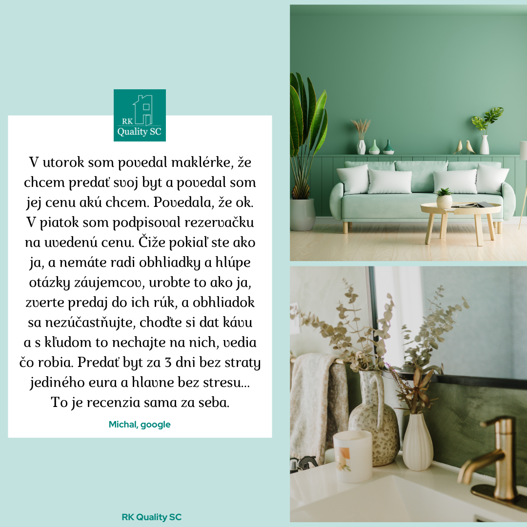 "Vyjadrujem spokojnosť so službami RK QUALITY SC v zastúpení Ing. Kašu."
